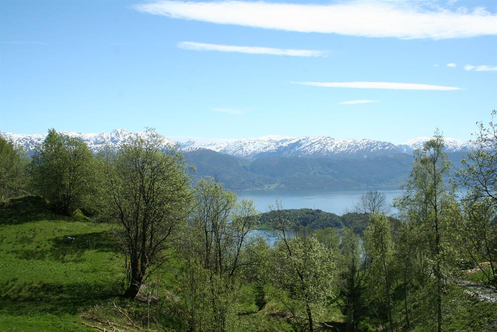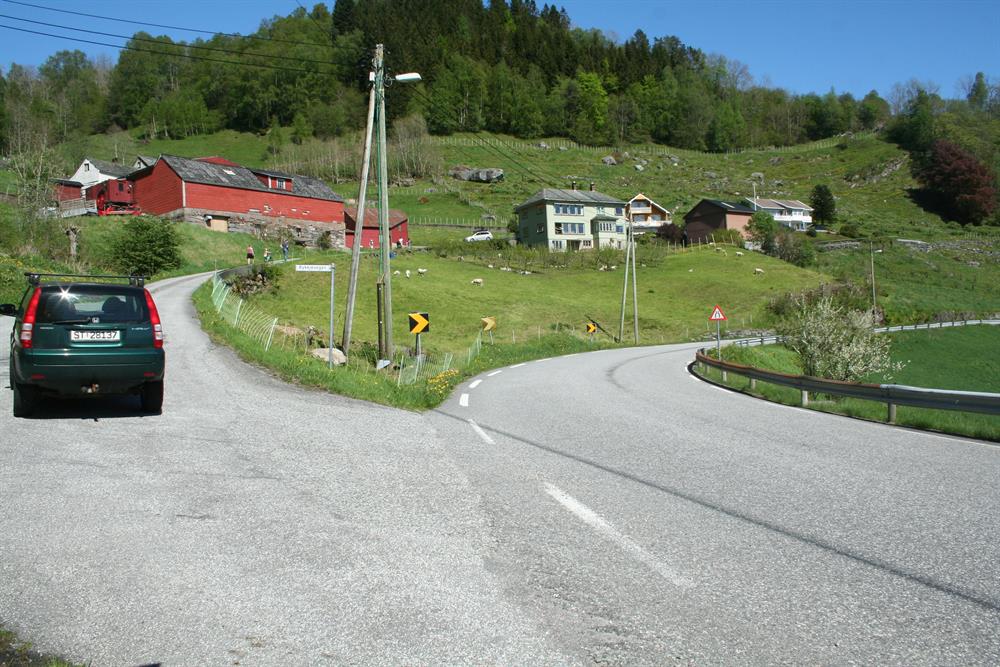 Over Rykkje. Avkøyring frå RV 7 ved Rykkje, køyr ca 1,8 km, passer gårdene på Rykkje.